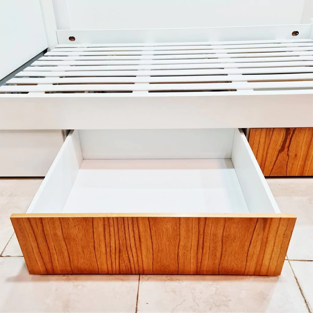 CAMA CON CAJONES Y RESPALDO REFORZADA LAQUEADA 1 PLAZA - ART Y3